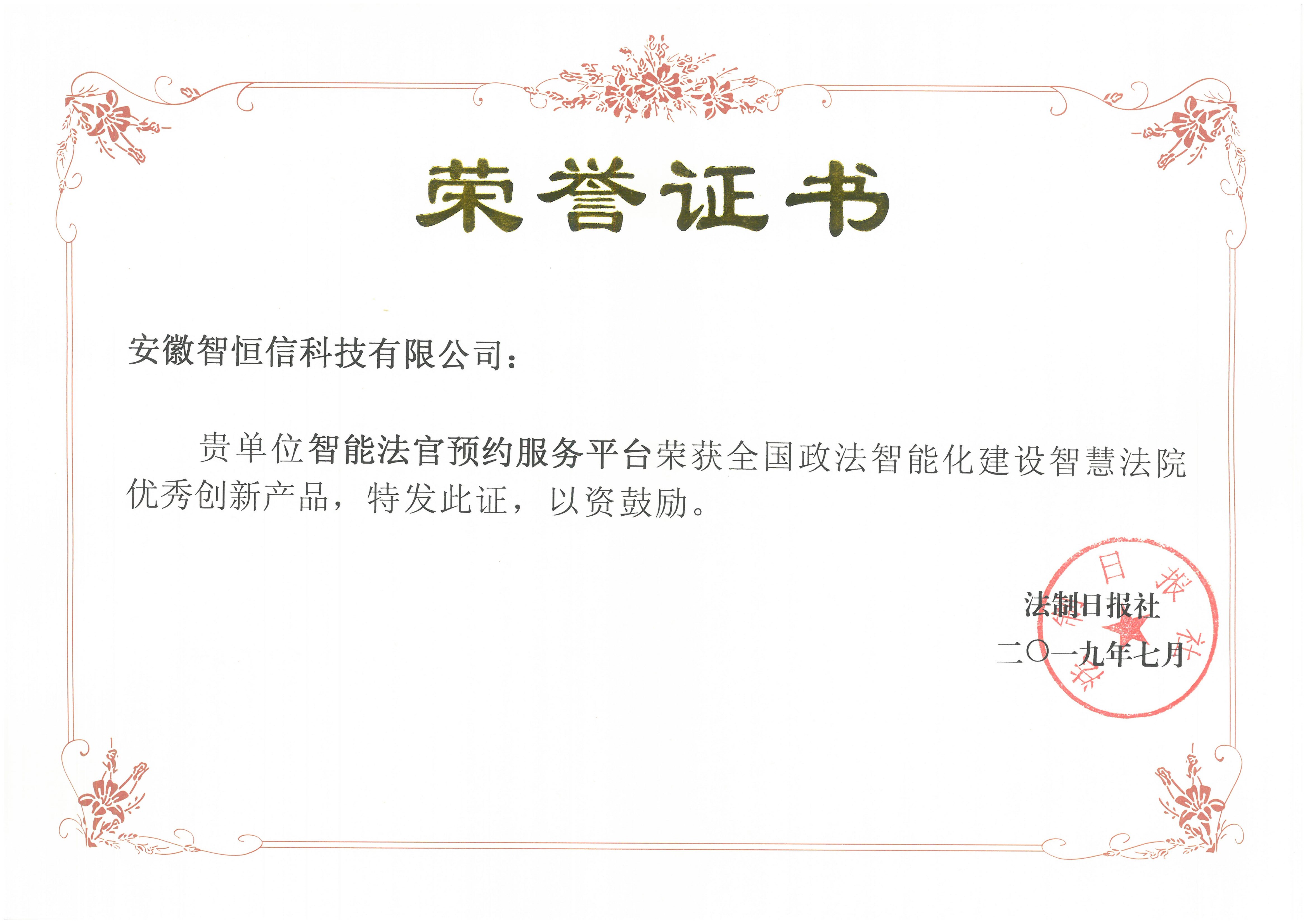 全国政法智能化建设智慧法院优秀创新产品